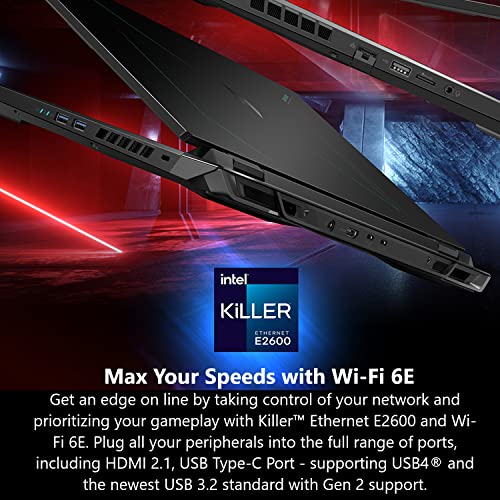 Internal Specifications: 16GB DDR5 Memory; 1TB PCIe Gen 4 SSD; Wireless Wi-Fi 6E supports dual-stream Wi-Fi in the 2.4GHz, 5GHz and 6GHz bands, including 2×2 MU-MIMO Technology; Killer Ethernet E2600 10/100/1000; Bluetooth 5.1